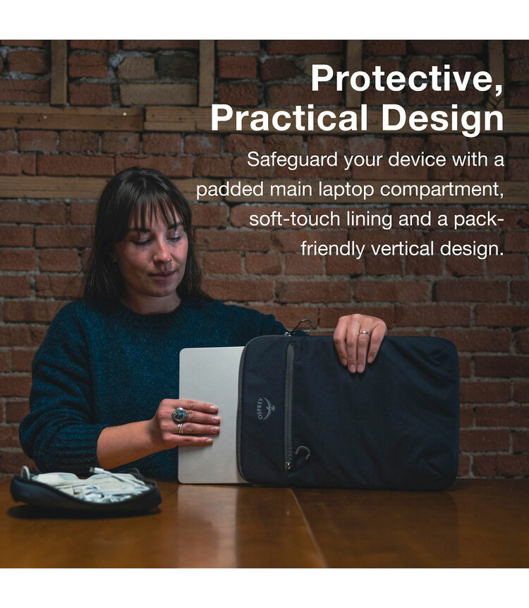 Whether you're hopping between classes or running to your next flight, this convenient, pack-friendly laptop case is ready to make the journey. A soft-touch lining keeps your device protected. Store your charger in the cable pocket, then use the grab handle to easily retrieve your device when it's time to get to work. Fits most laptops up to 14".
