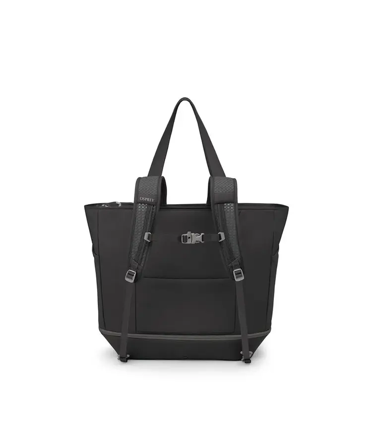 Convert between two stylish, comfortable carry styles in one using tuckaway tote straps and harness. A zippered bottom section separates shoes or gym clothes from the main compartment, while front straps secure a yoga mat or blanket. With additional features designed to go from workout to the park to travel, this tote pack redefines the term ready for anything.
