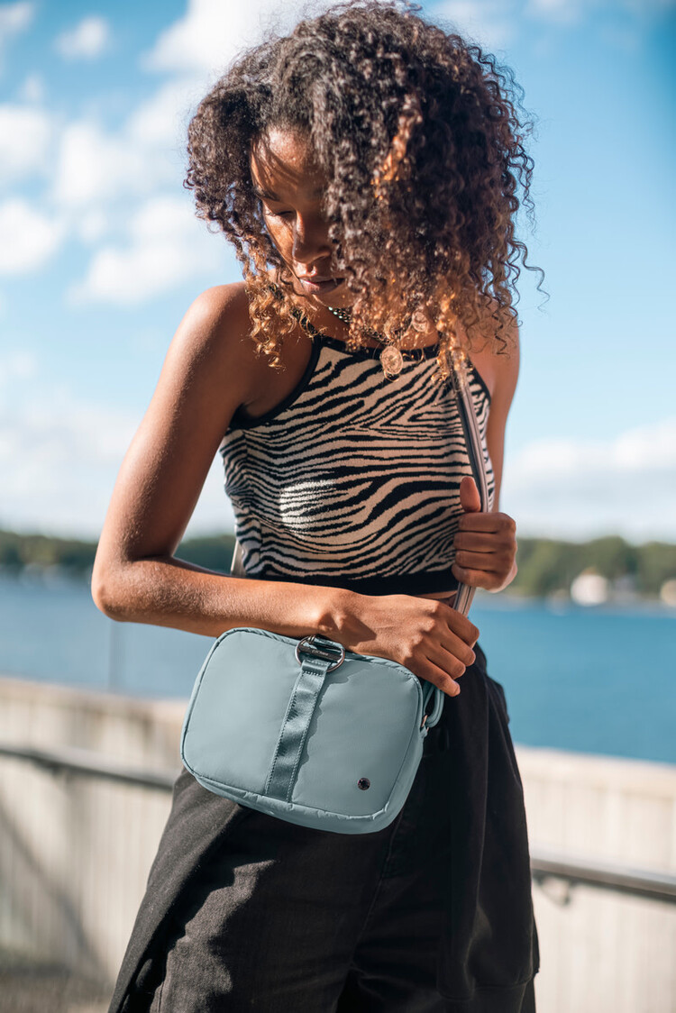 A ready-for-anything, anti-theft crossbody that combines fashion and function for a 24/7 life. Featuring a clasp locking system, RFIDsafe™ pockets, and an attachable security strap, it’s perfect when traveling or as an everyday purse. Made with ECONYL® regenerated nylon.