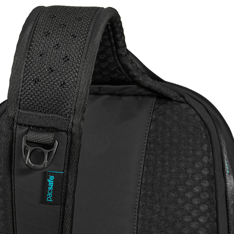 The Pacsafe ECO collection is our most sustainable collection yet by using almost 100% recycled materials and components. Get off the beaten track with this spacious sling pack that's designed for the outdoors, bike rides, traveling and more. The ergonomically-designed shoulder strap offers better support and carrying comfort. There's sufficient room to pack the essentials, including two water bottle pockets and a space for a water bladder. For extra comfort, choose which side you want the shoulder strap with our ambidextrous design. To minimize movement of the bag on your body while you're on the move, use the three-point attachment by connecting the body strap to the shoulder strap. Made with 8 recycled plastic bottles, which were used in the lining, mesh, webbing, and labels. The outer shell fabric and certain buckles were made with ECONYL® regenerated nylon, which comes from waste such as discarded fishing nets, fabric scraps, carpets and industrial plastic.
