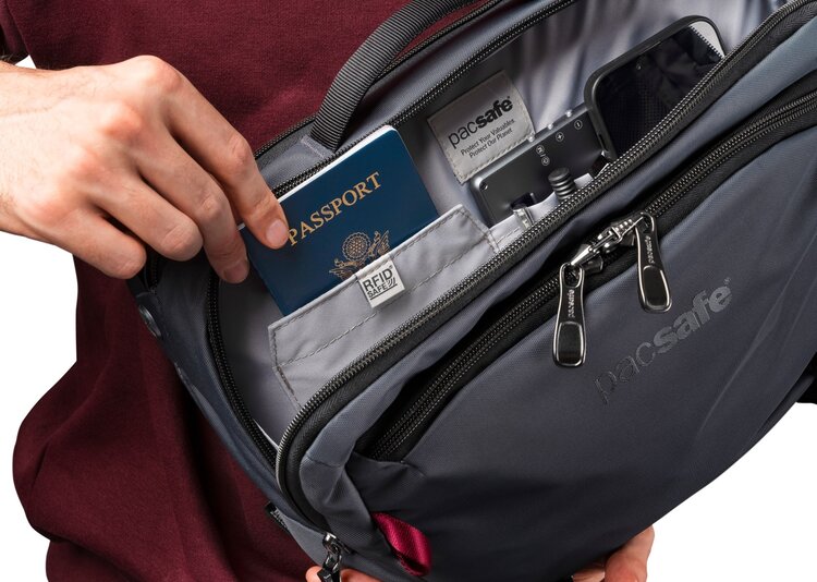 Versatility is a top priority for experienced travelers, which is why this hybrid crossbody seamlessly converts into a convenient sling pack. Rest easy knowing that advanced anti-theft technology is integrated into every aspect of this bag, ensuring the utmost security for your valuable tech and gadgets. With a dedicated compartment at the back that accommodates up to a 13-inch MacBook Pro, you'll have ample storage in the main compartments for all your other travel essentials and gadgets.
