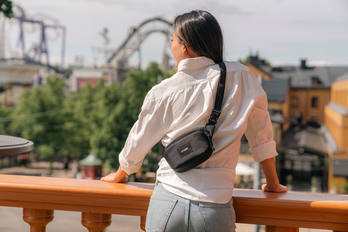 • Designed for those who like to keep things light and breezy, this miniature sidekick is all about carrying just what you need for your on-the-go adventures. Store your phone, keys, and pop in your AirPods. Worried about sticky fingers in a crowd? Packed with user-friendly anti-theft features, this micro sling keeps your stuff safe while you go about your day.