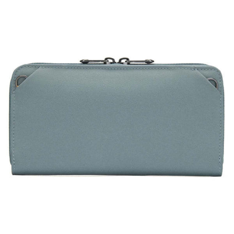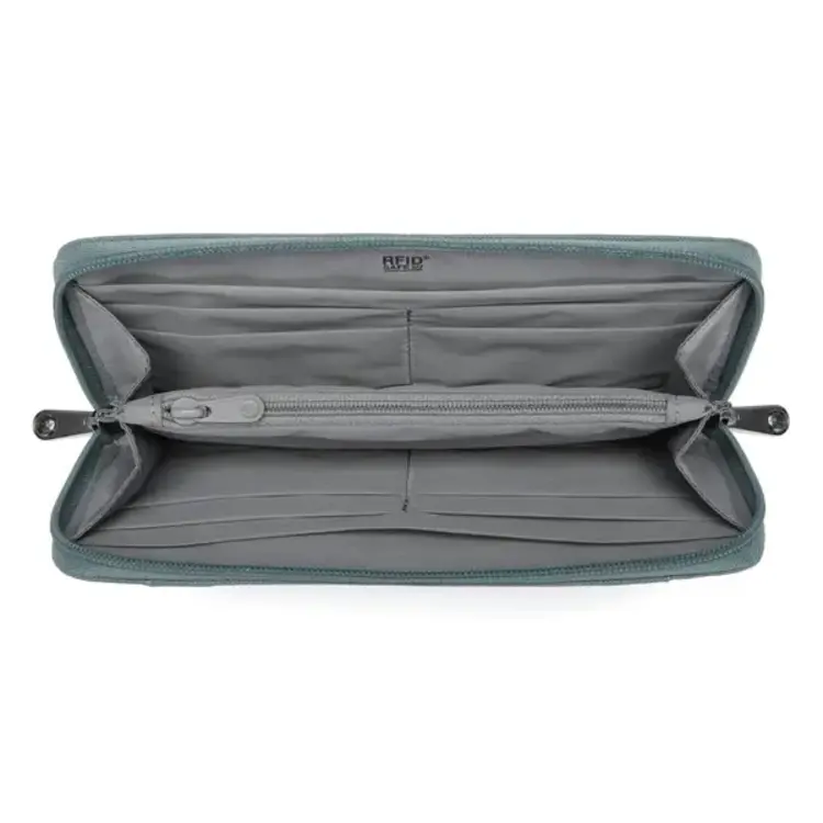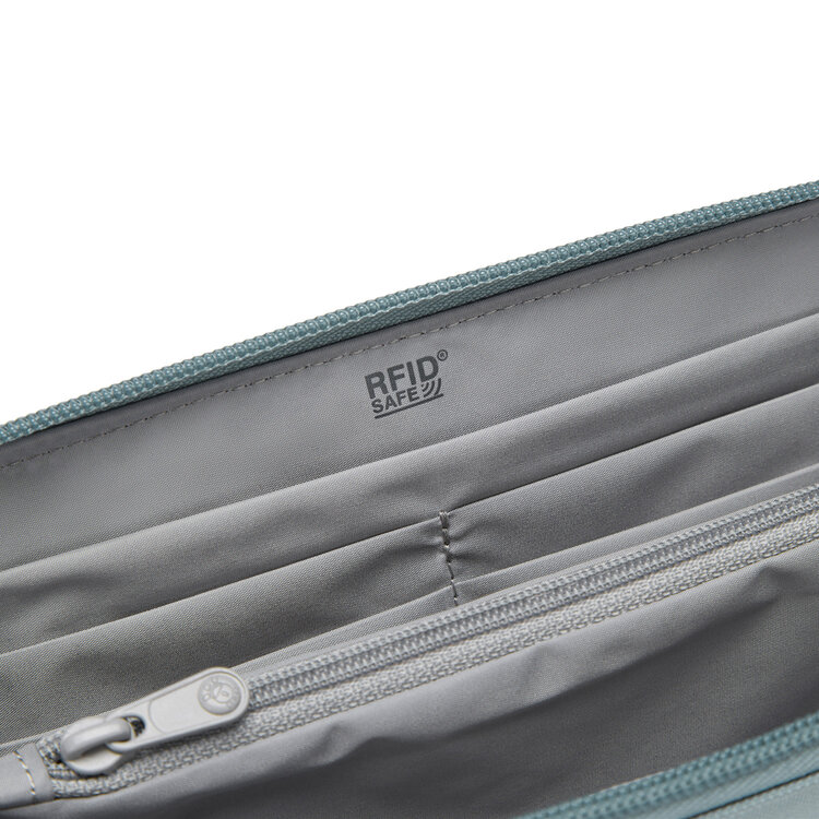 This convenient zip closure wallet was designed to securely carry your passport, boarding pass, phone, up to 10 cards, and cash. For added security, it features a hidden pocket where you can store important cards or high-value bills. Rest assured, every pocket is protected by RFID-blocking materials, ensuring protection against unauthorized scans. Carry it your way! With our customizable wallet, you have the freedom to transform it into a compact crossbody or wristlet in an instant. Simply attach a different security strap and personalize your wallet experience.