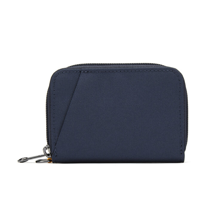 - Attachment point to clip into a Pacsafe bag or to attach wallet strap