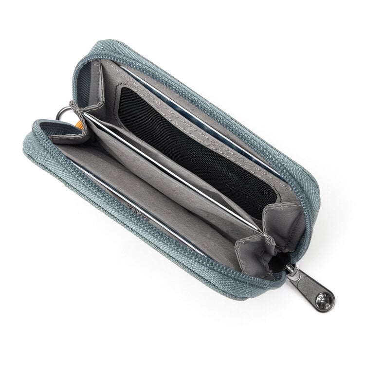 - Attachment point to clip into a Pacsafe bag or to attach wallet strap