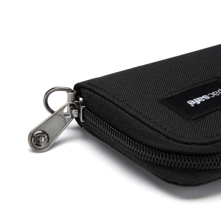 • Attachment point to clip into a Pacsafe bag or to attach wallet strap