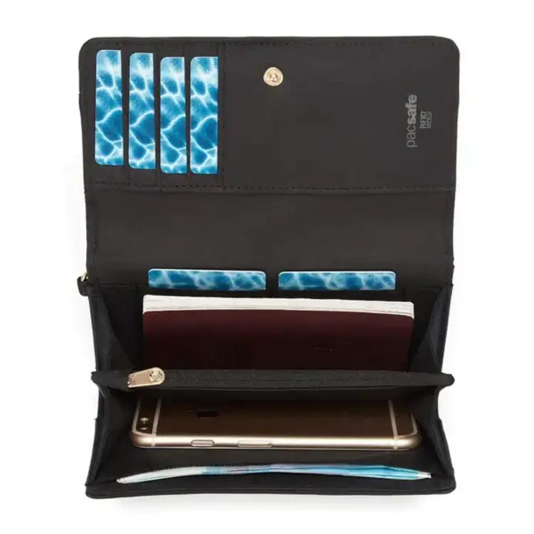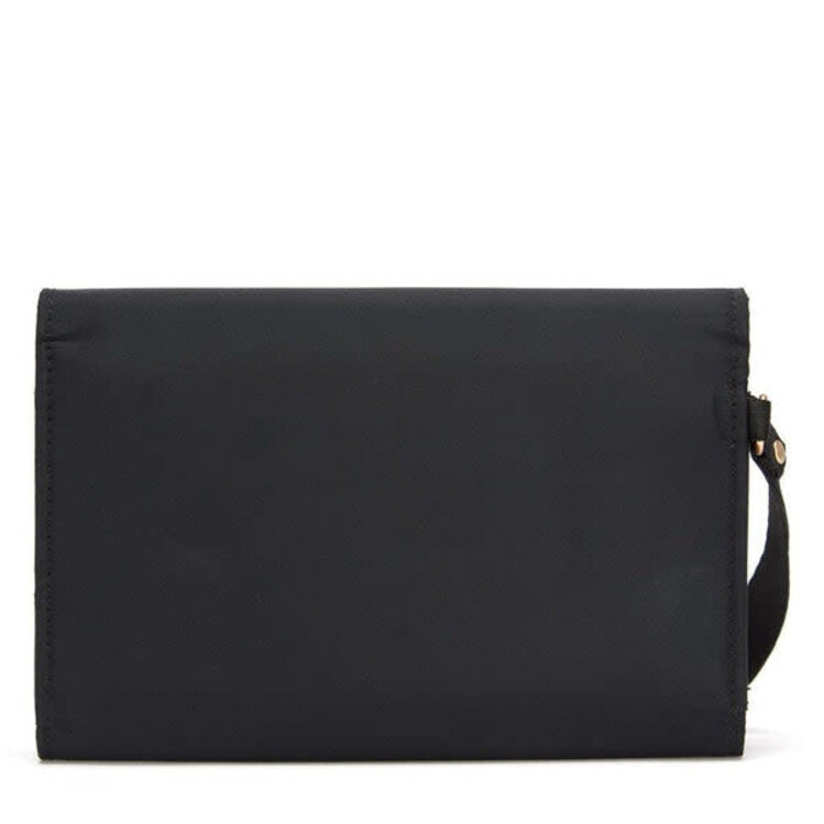 Great for nights out or traveling abroad, this clutch wallet has a wristlet for easy carry and RFID protection built in. With enough space to fit a phone and multiple sections to organize cash, cards and even some mascara, it’s your helpful companion wherever you go.