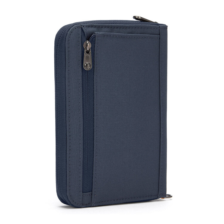 Sort your travel essentials into a zip folder that protects the information stored on your passport and cards. This Travel Organizer is made from RFID blocking material and has compartments for multiple currencies, space for a boarding pass and more. Made with 4 recycled plastic bottles.