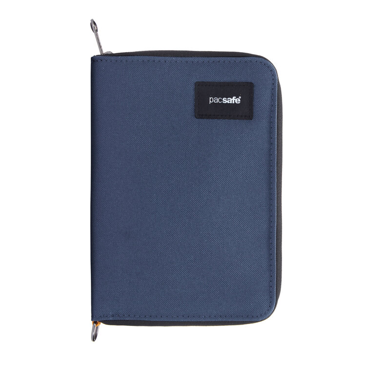 Sort your travel essentials into a zip folder that protects the information stored on your passport and cards. This Travel Organizer is made from RFID blocking material and has compartments for multiple currencies, space for a boarding pass and more. Made with 4 recycled plastic bottles.