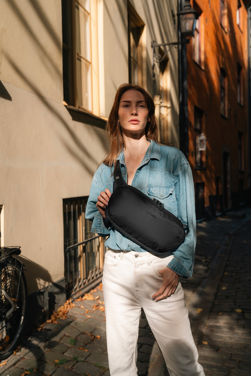 Hands down, the best sling pack ever. Packed with iconic Pacsafe anti-theft features such as a cut-resistant eXomesh lining, lockable zippers, an RFID-blocking pocket, and a cut-resistant shoulder strap, you know your bag, valuables, and identity are safe. The wide opening allows for easy organization of your gear, with compartments and pockets to accommodate all your necessities. The design offers the flexibility to carry the sling on your back, chest, or either shoulder because we understand the importance of versatility. This product is made with post-consumer recycled polyester (rPET), equivalent to 8 recycled plastic bottles, and is treated with 100% PFC-free water repellency.