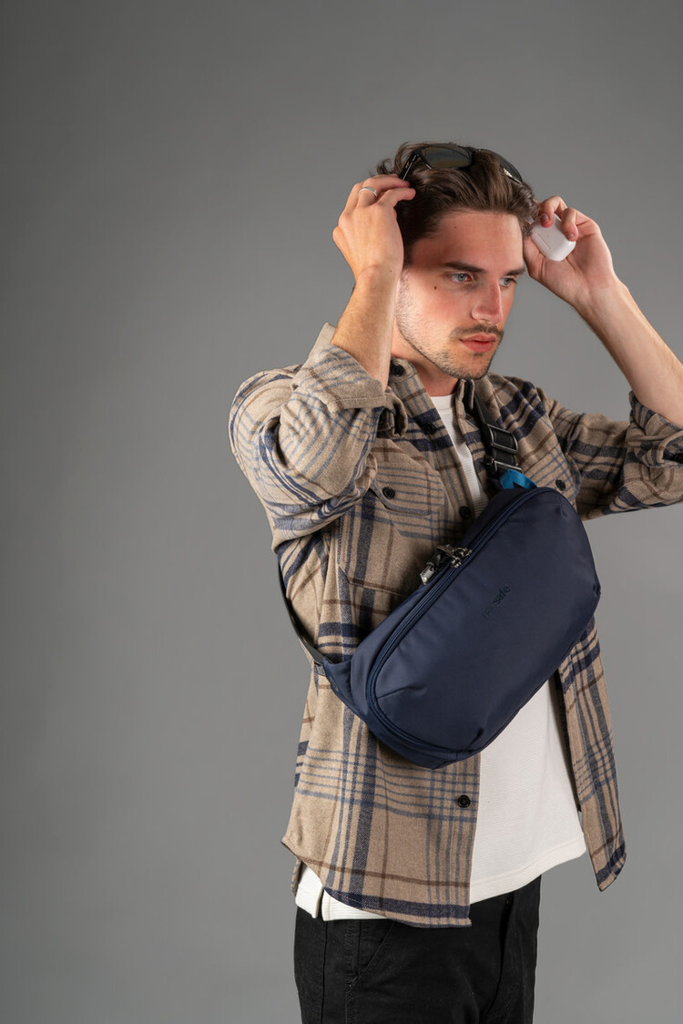 Hands down, the best sling pack ever. Packed with iconic Pacsafe anti-theft features such as a cut-resistant eXomesh lining, lockable zippers, an RFID-blocking pocket, and a cut-resistant shoulder strap, you know your bag, valuables, and identity are safe. The wide opening allows for easy organization of your gear, with compartments and pockets to accommodate all your necessities. The design offers the flexibility to carry the sling on your back, chest, or either shoulder because we understand the importance of versatility. This product is made with post-consumer recycled polyester (rPET), equivalent to 8 recycled plastic bottles, and is treated with 100% PFC-free water repellency.