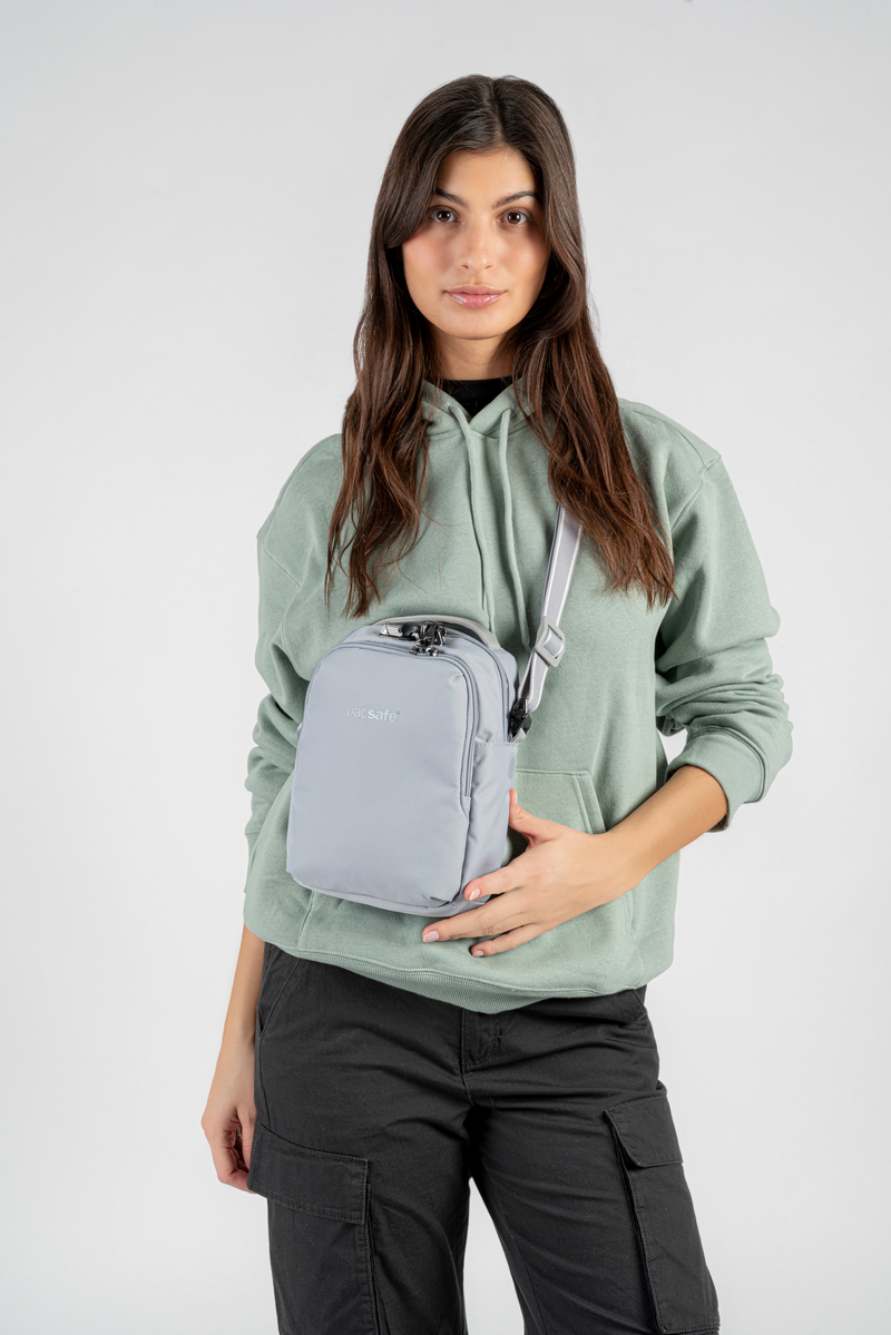 • Whether you're embarking on a day of travel or simply commuting day-to-day, this compact anti-theft crossbody is designed to effortlessly organize and carry your essentials. It features two lockable compartments, each equipped with internal organization pockets, as well as a padded sleeve designed to fit an 8-inch tablet.