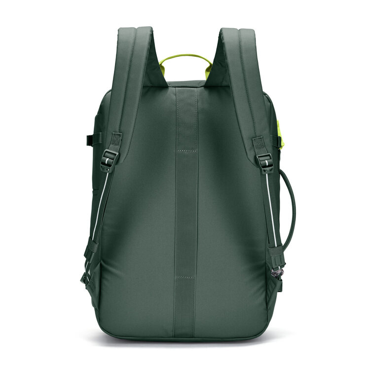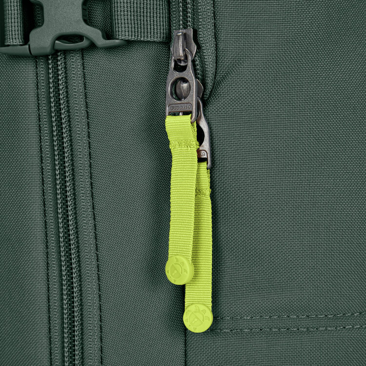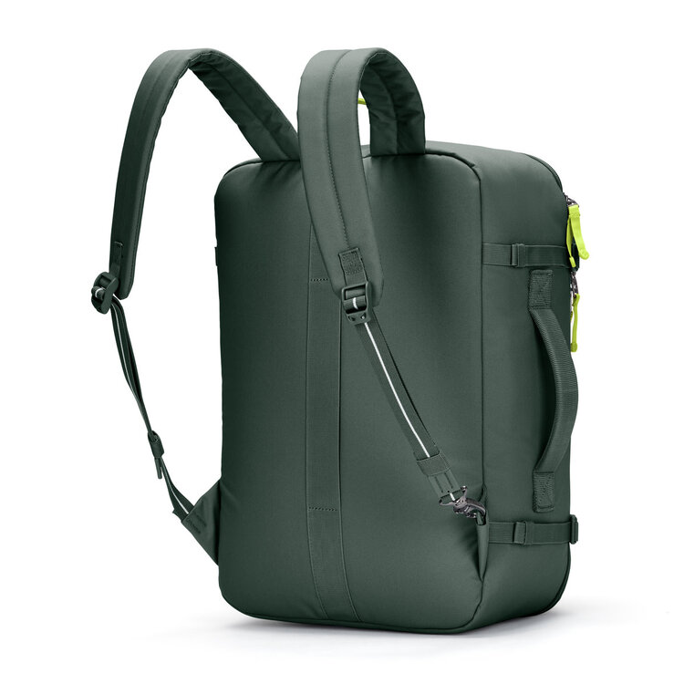 With 34L of capacity, this backpack offers enough storage for spontaneous travels but it's also suitable for day-to-day use. The lockable main compartment can open up like a suitcase for easy packing and access. There's also a sturdy side handle so it can be carried like a suitcase and side compression straps to help stabilize the bag when it's not full. Keep your travel documents and essentials that you frequently reach for in the conveniently placed outer pocket, secured with an easy to use zip tab to deter pickpockets. This product is made with post-consumer recycled polyester (rPET), equivalent to 28 recycled plastic bottles.