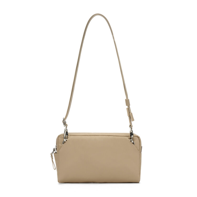 Introducing a truly versatile anti-theft pack that adapts to your needs in three different ways: as a crossbody or sling pack with an adjustable cut-resistant strap and as an elegant clutch for a night out when the strap is removed. Designed to be your perfect companion for both travel and everyday use, this pack caters to adventurers and city dwellers alike. Stay organized and secure with its built-in RFID-blocking wallet featuring four card slots and a passport pocket, along with a spacious zipped RFID-blocking pocket for boarding passes or longer wallets. With reputable anti-theft technology, including cut-resistant materials, lockable zippers, and RFID-blocking materials, this pack ensures your belongings are protected. Plus, its polished hardware and sleek style effortlessly blend functionality with sophistication.