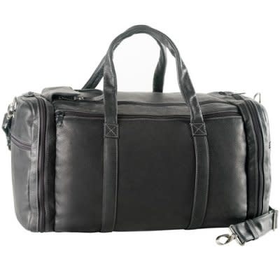 Perfect as a carry-on bag or to pack for an overnight trip, sleek leather adds a stylish touch to the classic sporty shape of this duffel bag.
