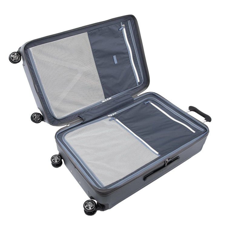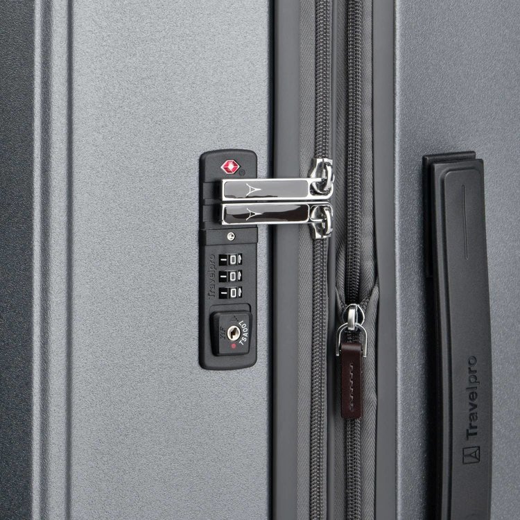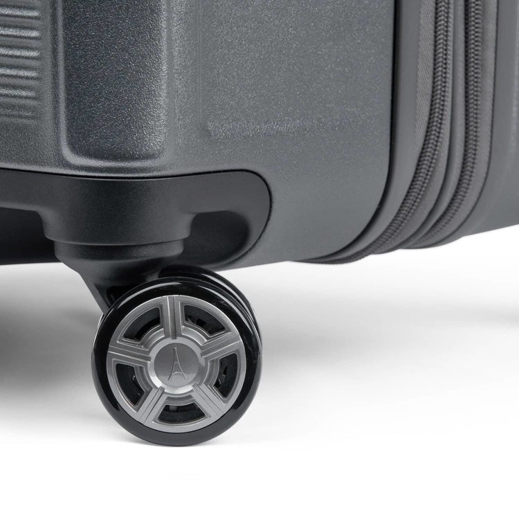 It is also ergonomically designed thanks to the Travelpro® exclusive PrecisionGlide System–eight MagnaTrac® self-aligning spinner and the four-stop adjustable PowerScope Lite handle with comfortable Contour