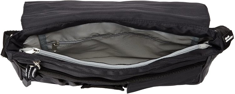 • Under the flap is an organizer that includes a velcro pocket, a sleeve pocket, three pen sleeves and two full length zippered pockets