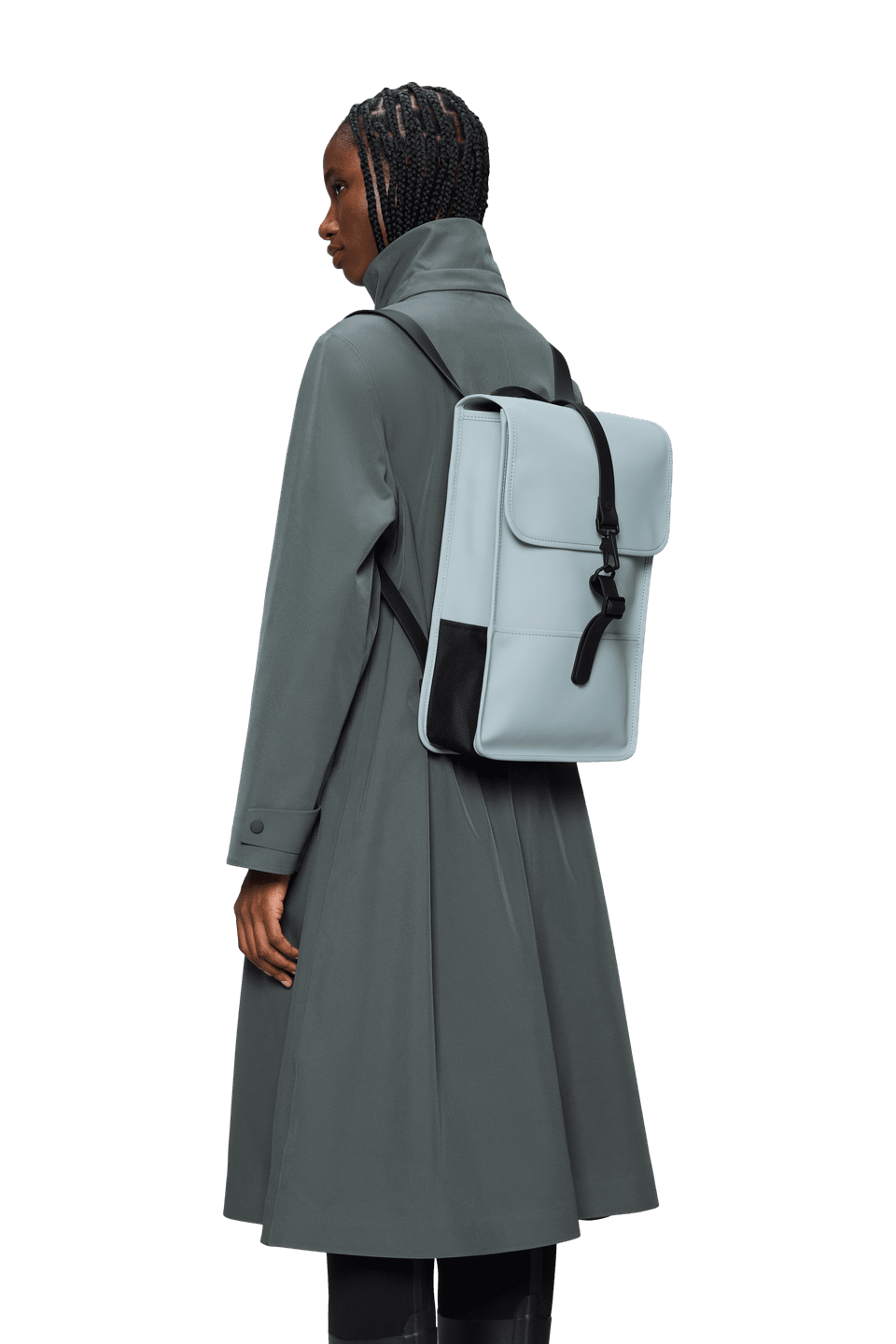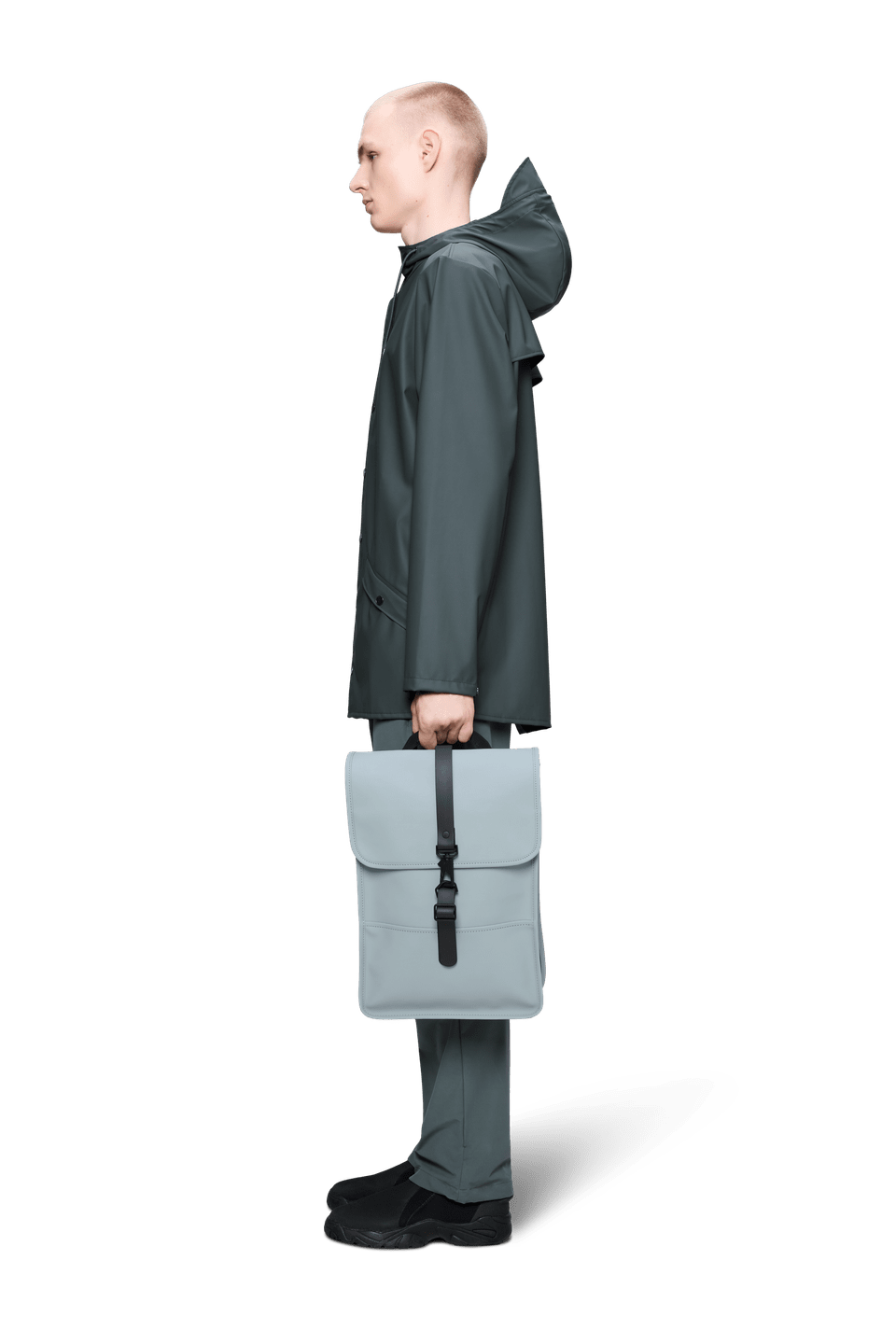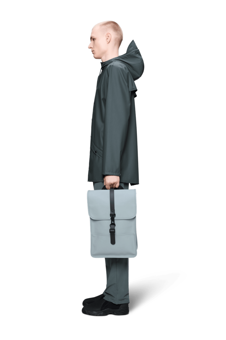 Backpack Mini is cut from Rains' signature PU fabric, engineered for carrying strength, durability and a smooth feel.