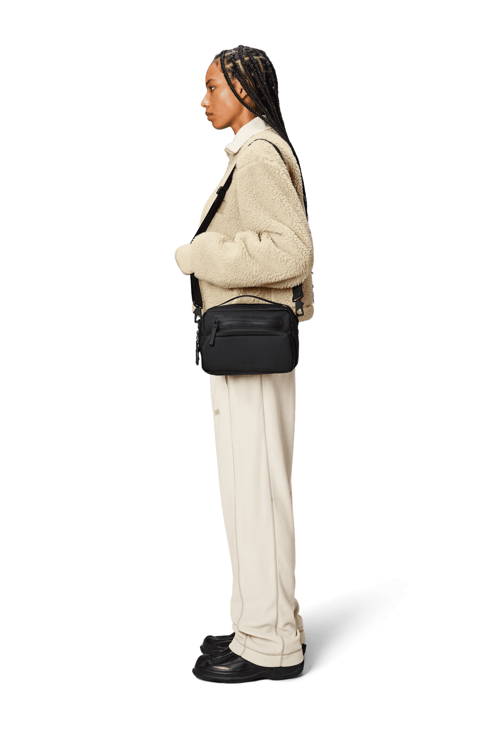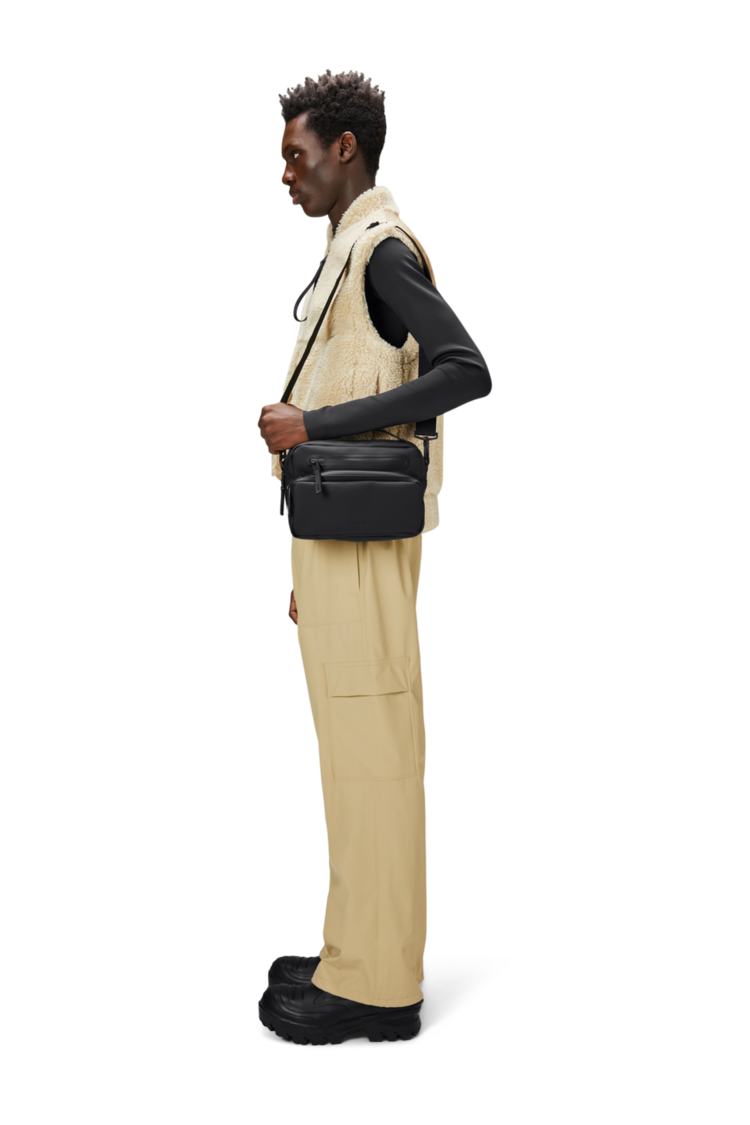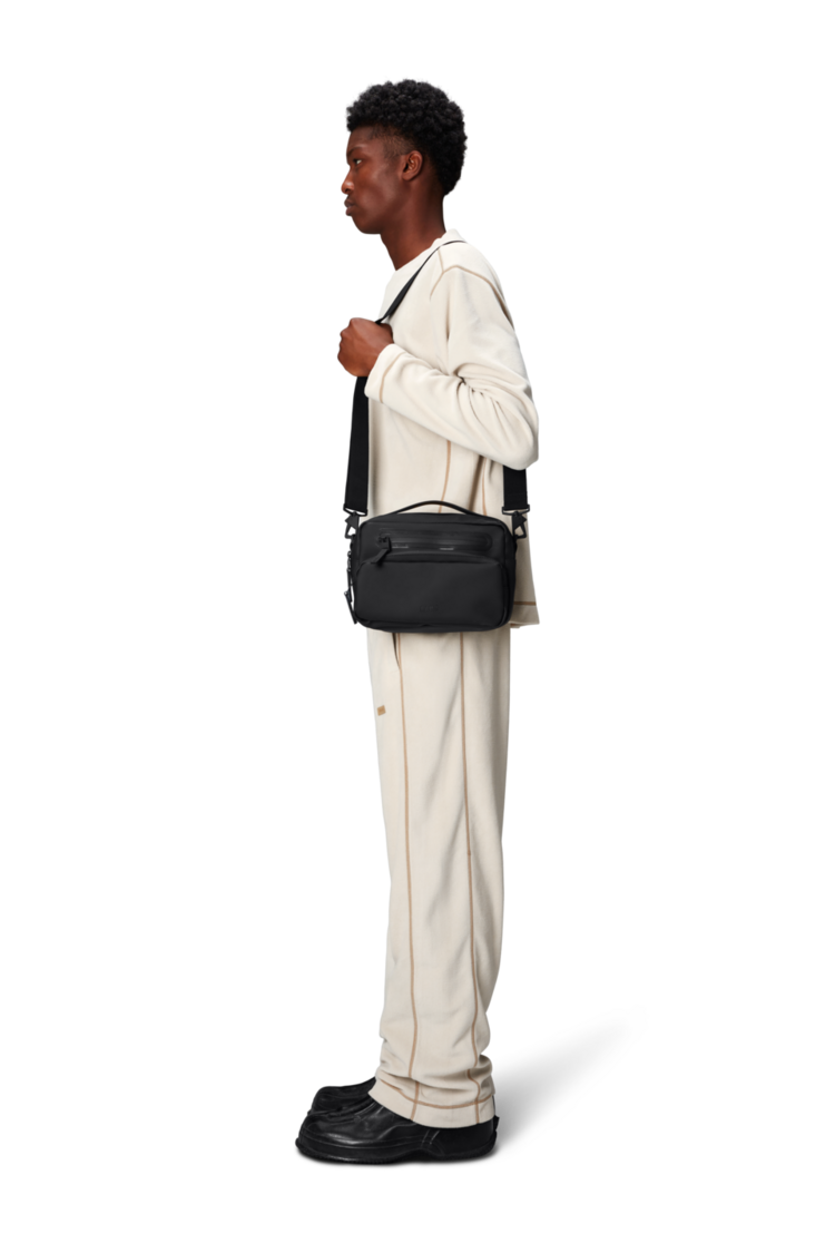 Cargo Box Bag is an upscaled version of its namesake, Box Bag. Designed to be clean and functional with various carrying options.Cargo Box Bag is a clean and functional waterproof bag, featuring a single main compartment with two internal pockets. Finished with two front zip pockets and a back zip pocket for easy organizing.This design lives up to its boxy name and delivers multiple options for both styling and use. It can be carried over the shoulder, as a crossbody bag or as a handbag. Topped off with a detachable adjustable webbing shoulder strap and TPU carry handle.Cargo Box Bag is cut from Rains' signature PU fabric, engineered for carrying strength, durability and a smooth feel.