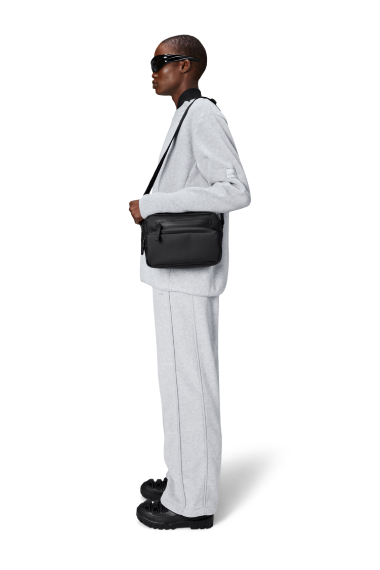 - Waterproof signature PU fabric- Coated tonal zip closures- Single main compartment- Two front zip pockets- Back zip pocket- Two internal easy-access pockets- Detachable, adjustable webbing shoulder strap- TPU carry handle
