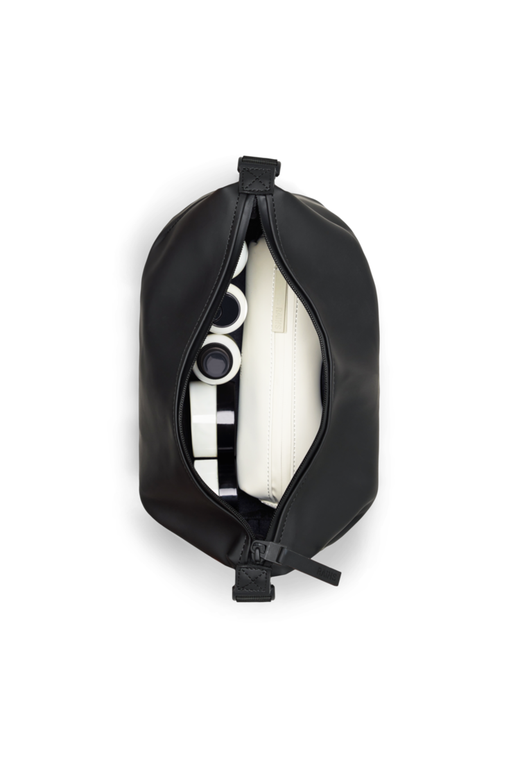 Hilo Wash Bag is cut from Rains’ signature waterproof PU fabric, engineered for carrying strength, durability, and a smooth feel.