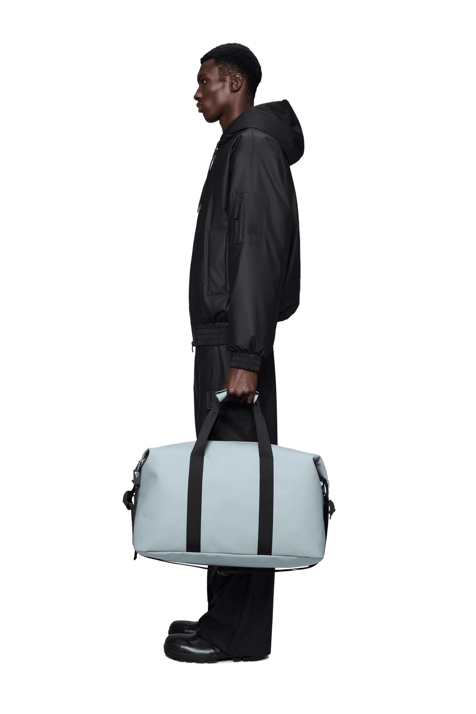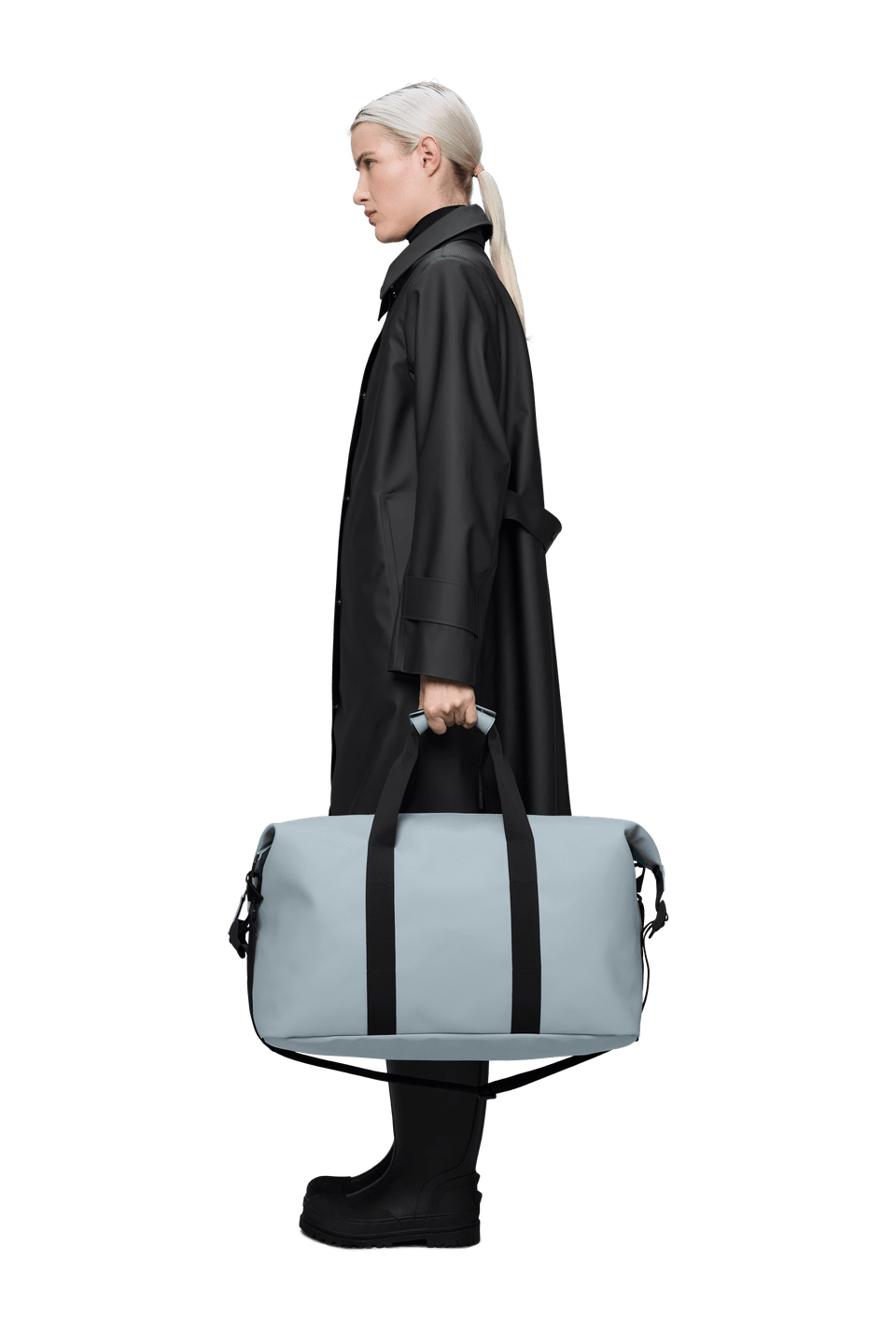 Hilo Weekend Bag is cut from Rains’ signature waterproof PU fabric, engineered for carrying strength, durability, and a smooth feel.