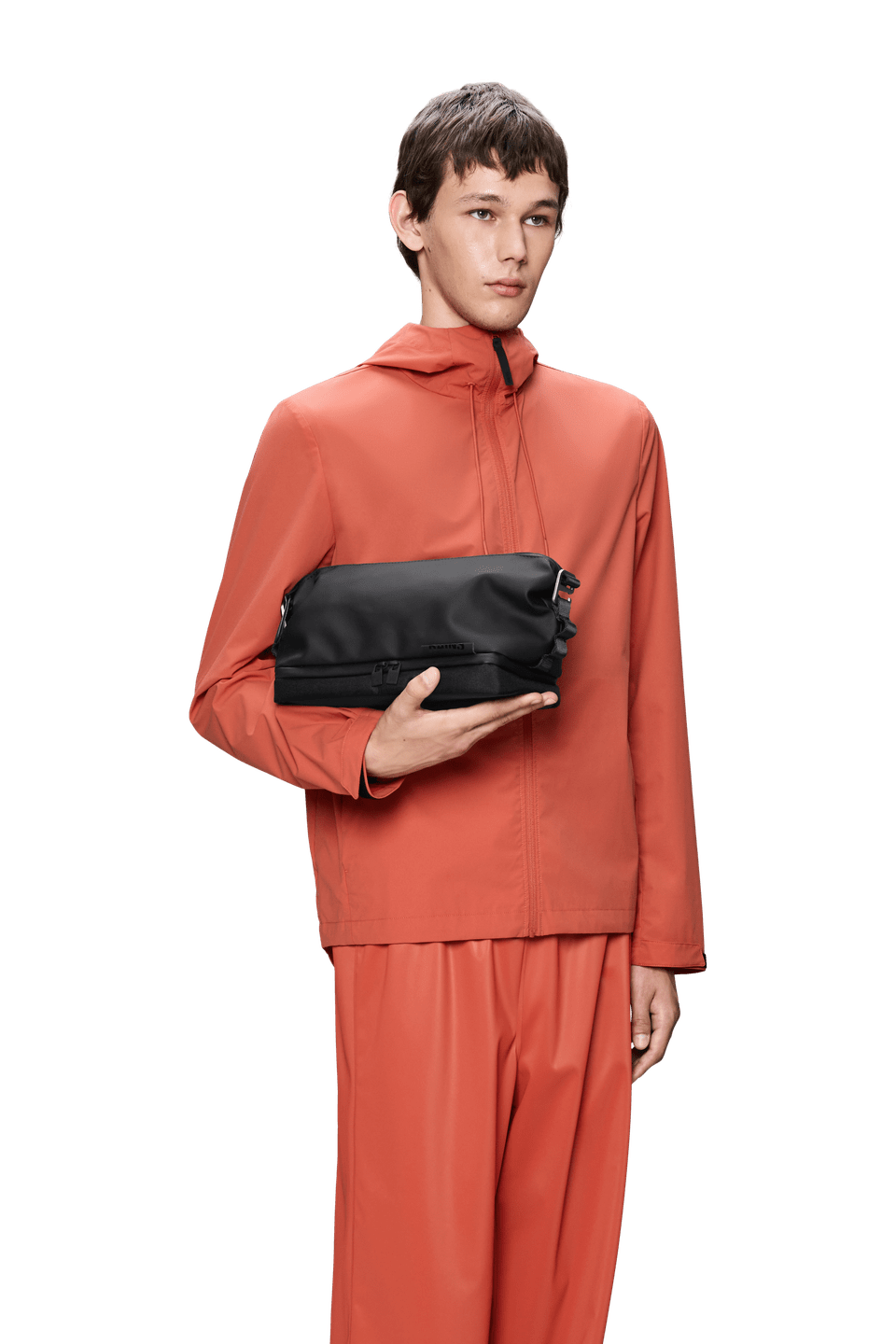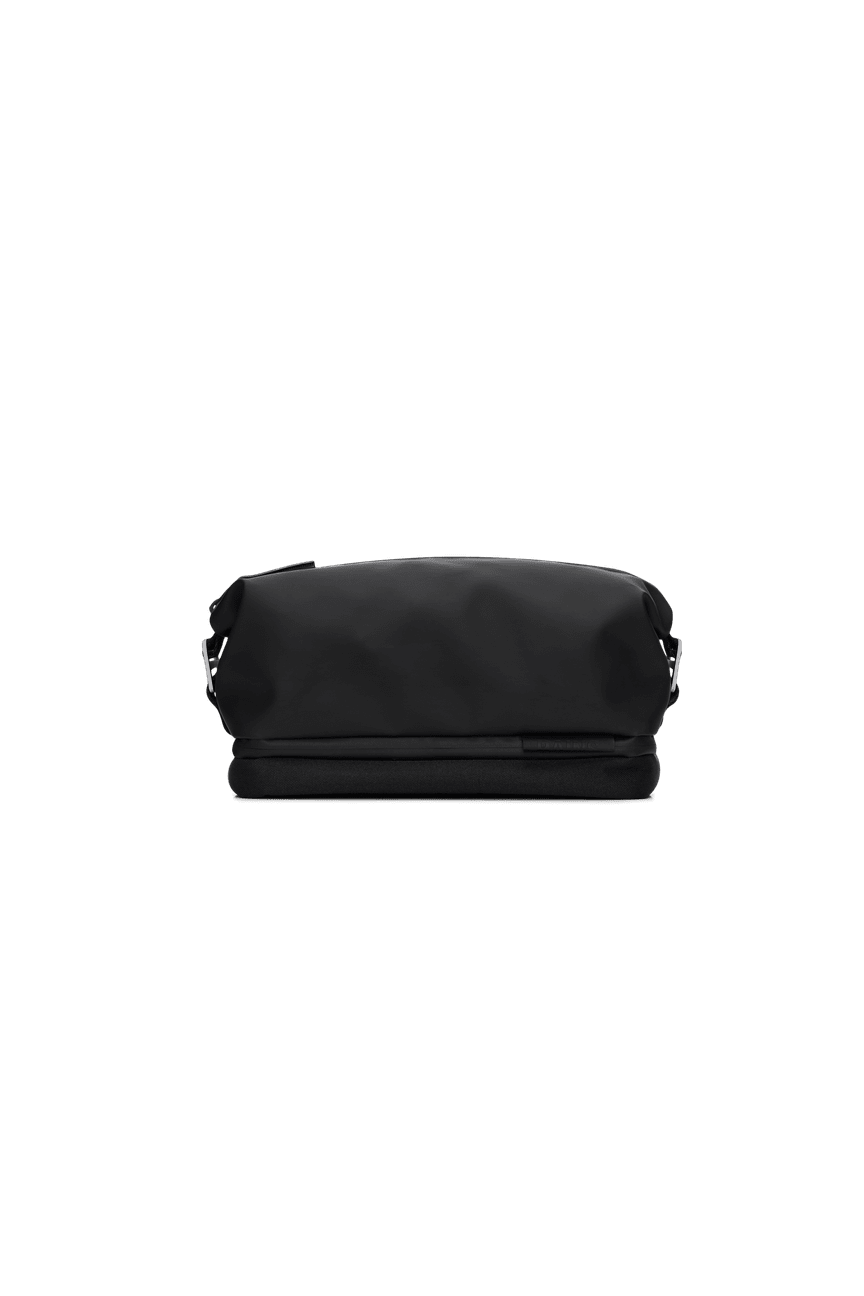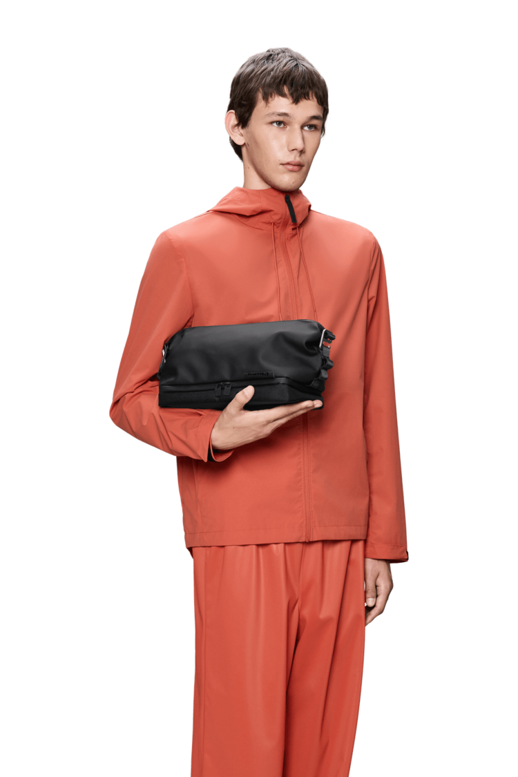Otaru Wash Bag is cut from a mix of Rains’ signature waterproof PU fabric and waterproof woven polyester, engineered for carrying strength, durability, and a smooth feel.