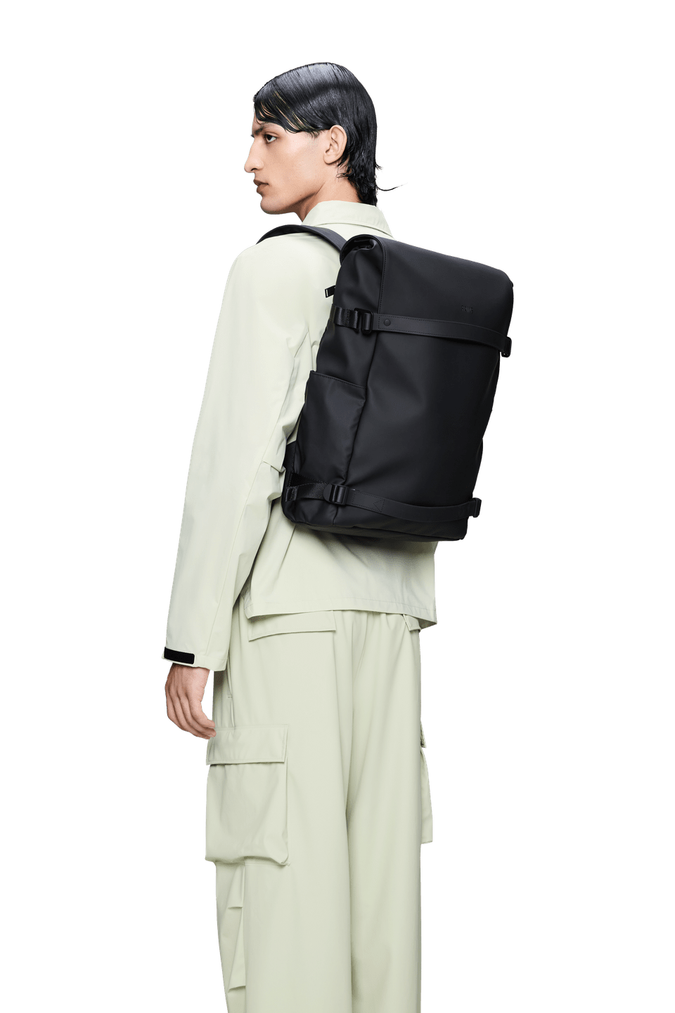 The design is cut from durable PU, with elevated TPU details and minimal hardware for a sharp, modern finish.