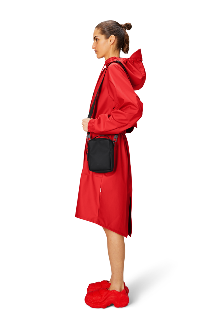 Reporter Box Bag is defined by a minimal boxy silhouette. Characterized by a clean, yet functional design.This waterproof bag is ideally sized for carrying daily essentials and comes with a coated zip closure for easy access. It is designed with an adjustable webbing strap to be carried over the shoulder, across the body or as a handbag, when detached from the convenient carabiners. Open the bag to reveal a single main compartment -- perfect for carrying daily essentials securely on-the-move. Reporter Box Bag is cut from Rains' signature waterproof PU fabric, engineered for carrying strength, durability and a smooth feel.