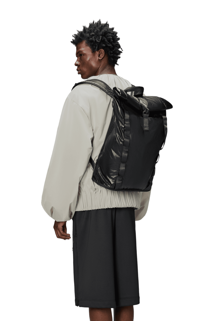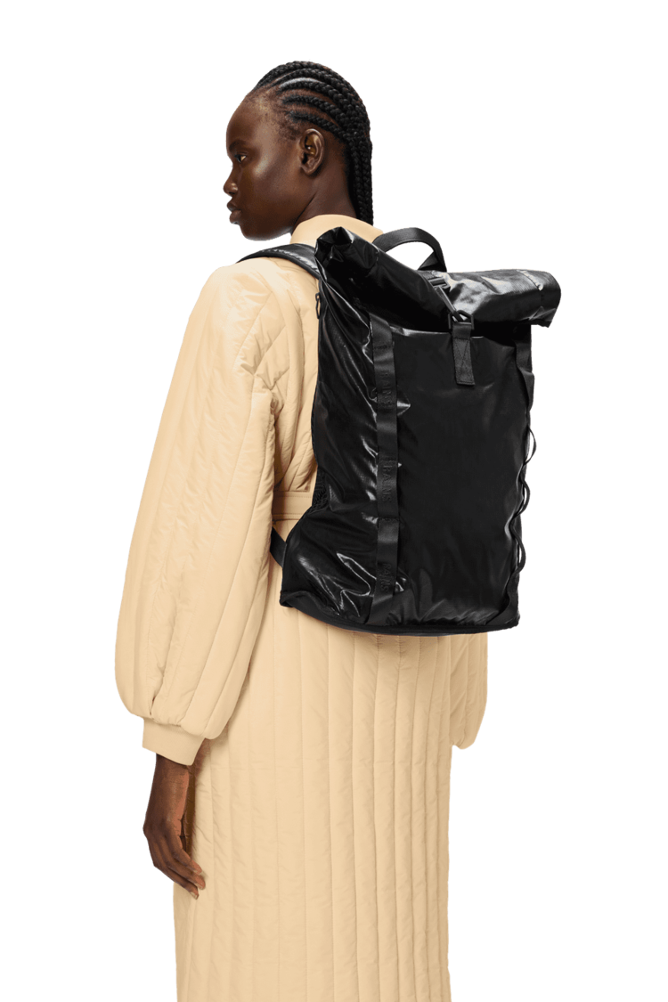 Sibu Rolltop Rucksack is cut from Rains' technical polyester finished with a waterproof TPU coating. The design is sleek and lightweight with a great durability.