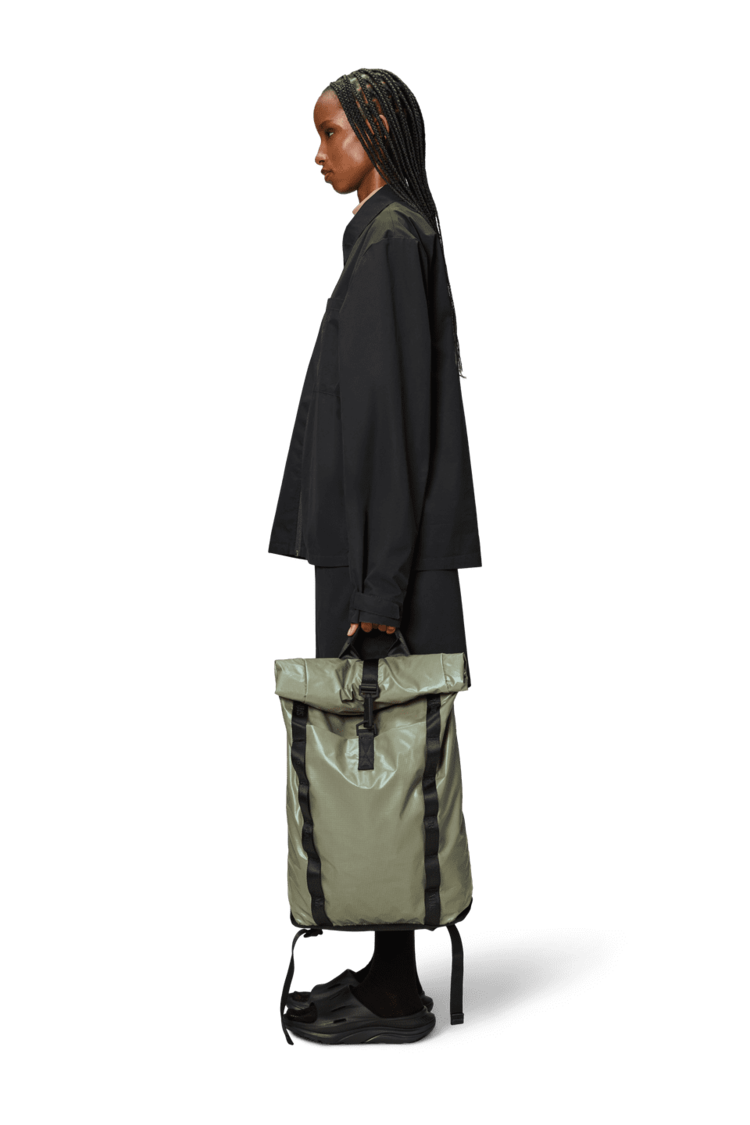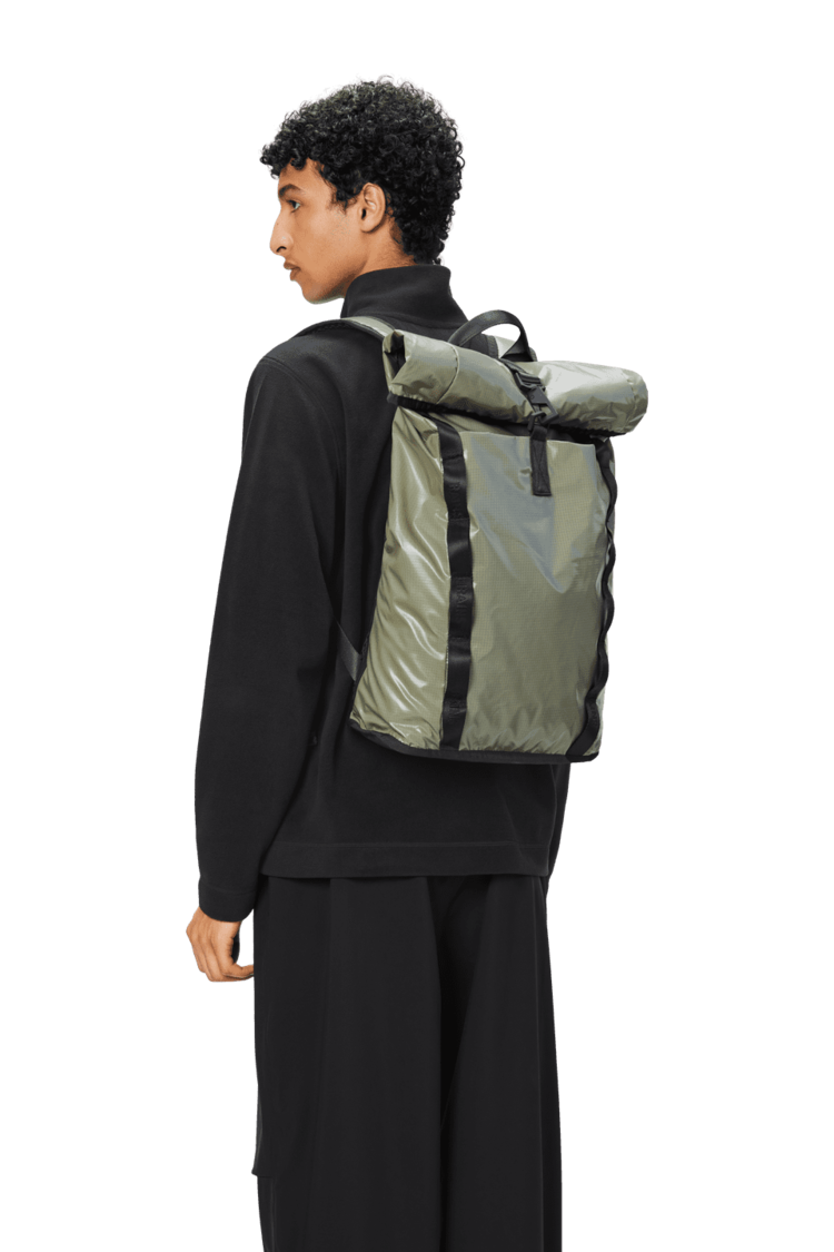 Sibu Rolltop Rucksack is cut from Rains' technical polyester finished with a waterproof TPU coating. The design is sleek and lightweight with a great durability.