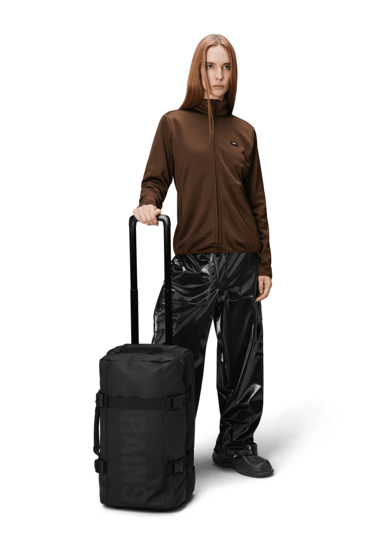 This waterproof trolley combines Rains’ signature waterproof PU with a half-silhouette hard shell for upright stability and general durability.