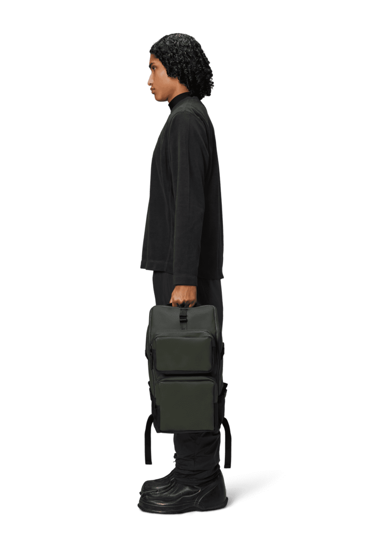 Trail Cargo Backpack is cut from Rains' signature PU fabric, engineered for carrying strength, durability and a smooth feel.