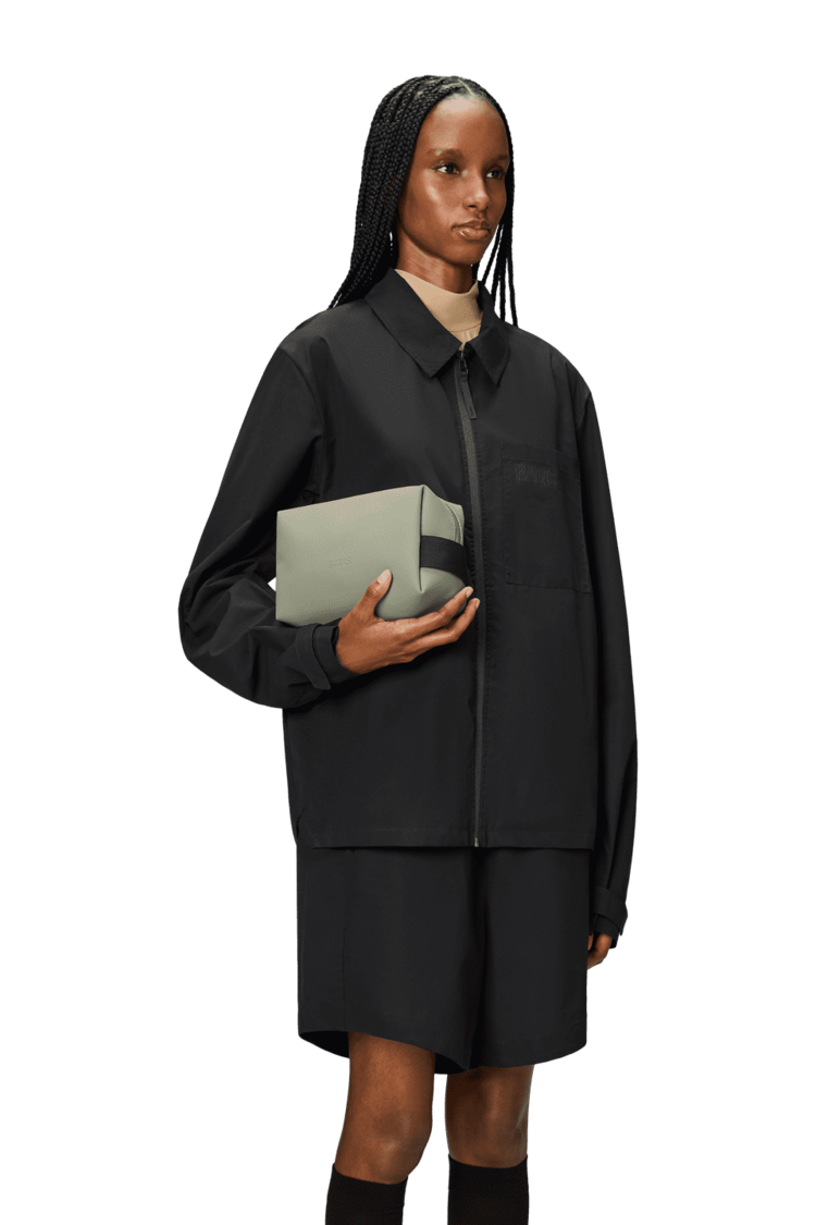 Wash Bag Small is cut in Rains’ signature waterproof PU fabric, engineered for carrying strength, durability, and a smooth feel.