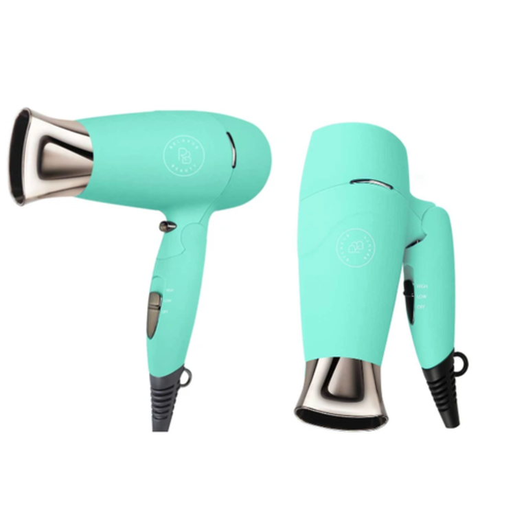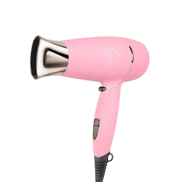 This sleek and compact dual voltage Travel Blow Dryer is a beauty essential for at home or on the go! Flexible styling options with two speeds and a cool shot button to set your style to last all day. A removable nozzle directs heat for precision styling and glossy shine.
