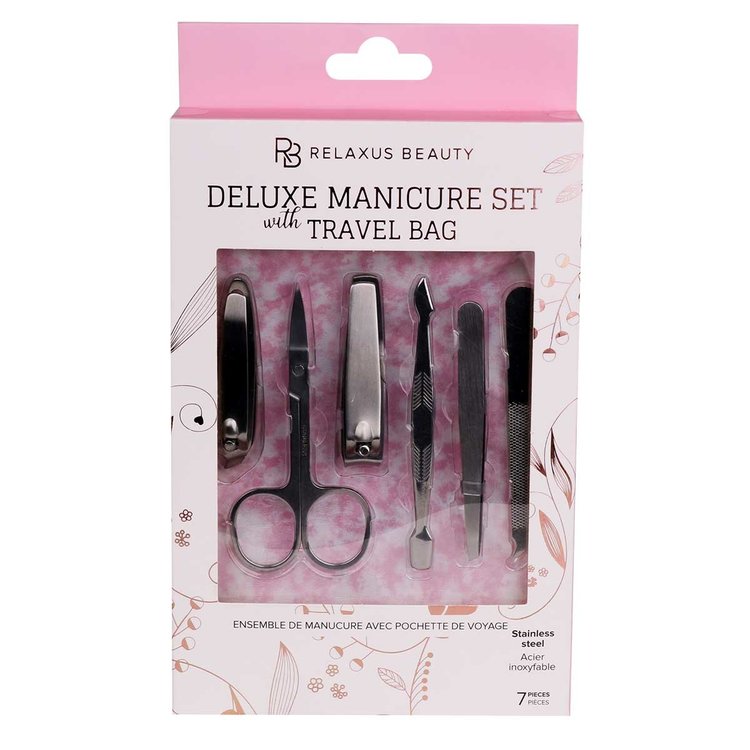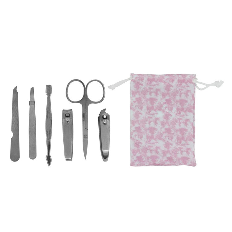 Get professional salon results with this 7-pc Manicure Set at home or on the go—stainless steel tools for long-lasting performance. Wipe/wash clean after each use, and use rubbing alcohol to disinfect.