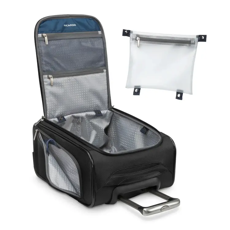 • Large packing capacity• Front zippered pocket• In-line skate wheels• Quick access large front pocket• Large top opening• Side zippered pocket• Telescoping handle• Reinforced corner protectors• Interior zippered pockets• Removable 3-1-1 wet pouch