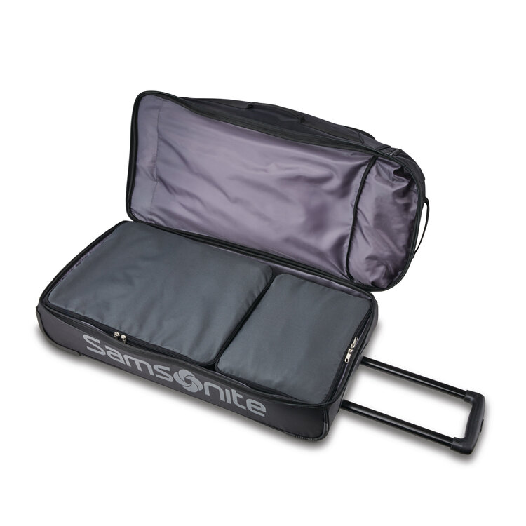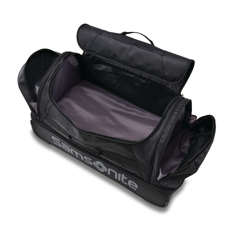 An update to the original Andante wheeled duffle, Andante 2 boasts added features for convenience, while continuing to provide maximum durability for the toughest travel. Andante 2 wheeled duffles are constructed using water resistant polyester, have a locking pull handle and smooth rolling wheels for effortless mobility. Multiple exterior grab handles allow for easy handling from a variety of points for multiple carrying options.The drop bottom compartment, and large U-shaped openings make packing and finding belongings a breeze.