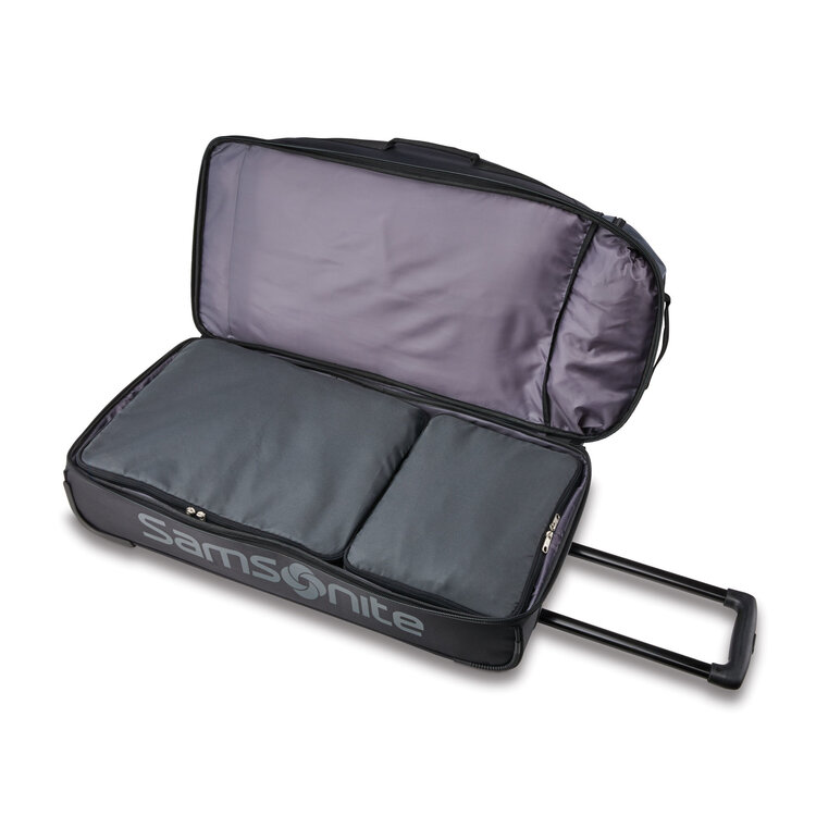 An update to the original Andante wheeled duffle, Andante 2 boasts added features for convenience, while continuing to provide maximum durability for the toughest travel. Andante 2 wheeled duffles are constructed using water resistant polyester, have a locking pull handle and smooth rolling wheels for effortless mobility. Multiple exterior grab handles allow for easy handling from a variety of points for multiple carrying options.The drop bottom compartment, and large U-shaped openings make packing and finding belongings a breeze.