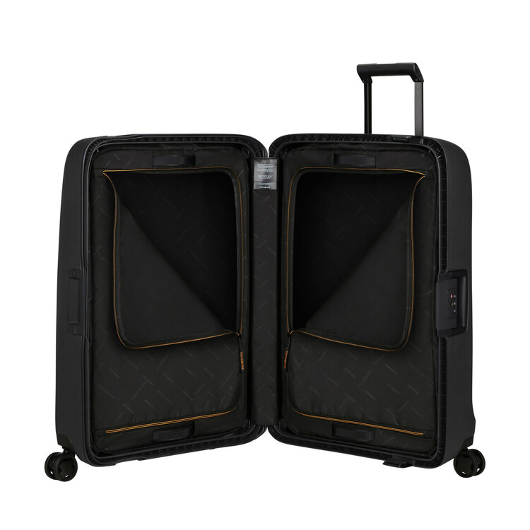 Essens is a part of Samsonite’s Recyclex™ Material Technology initiative and features: shells made with at least 70% post-consumer recycled polypropylene; lining & webbing made with resp. 97% & 100% post-consumer recycled PET; green electricity used for shell production & final product assembly & self-repair friendly wheels.