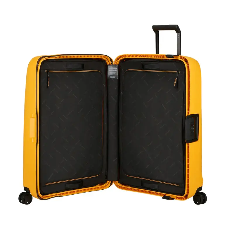 Essens is a part of Samsonite’s Recyclex™ Material Technology initiative and features: shells made with at least 70% post-consumer recycled polypropylene; lining & webbing made with resp. 97% & 100% post-consumer recycled PET; green electricity used for shell production & final product assembly & self-repair friendly wheels.