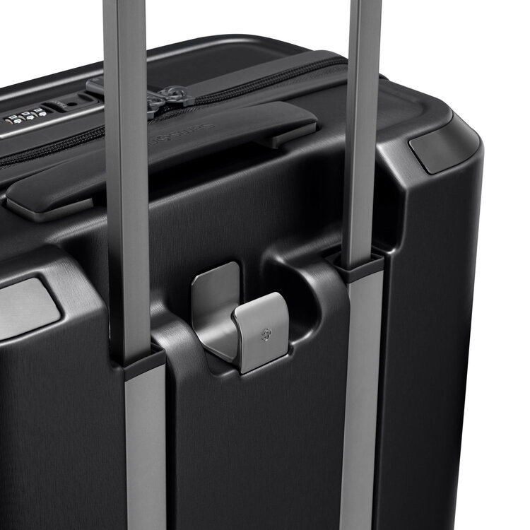 Constructed of polycarbonate - a highly impact-resistant material that is strong and lightweight.Top mounted hook allows the user to hang a smaller bag to go hands-free.Retracting top and side carry-handles stay close to the case to protect against damage.Integrated TSA-approved lock provides added security when checking in your luggage.RightHeight™ pull handle offers incremental height adjustments for a highly customized fit.Wheels have a shock-absorbing, Aero-Trac suspension design for smooth and quiet rolling.Anti-theft zippers have a double layer of teeth that make it more difficult for a thief to break into your case via the zipper tape.Meets most Carry-On* requirements. *Carry-On size and weight allowances vary by airlineOverall Dimensions: 21.5 in. x 15.5 in. x 8.5 in.Weight: 7.5 lbs