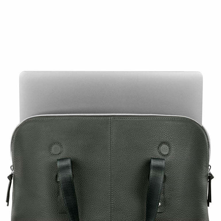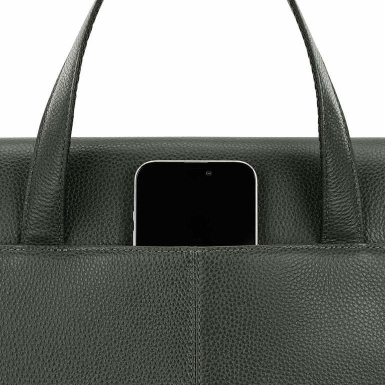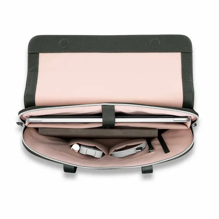 A modern take on a classic silhouette, the Convertible Leather Brief is crafted from supple pebbled leather to elevate your polished, professional look. It features a padded laptop sleeve, interior organization with a zippered pocket and sleeves. The zipper and magnetic closures on the main compartment offer versatility and security. Carry it by the top handles, on your arm, or with the removable crossbody strap. A discreet StackIt™ strap ensures effortless travel, while the exterior quick access pocket keeps your phone within easy reach.