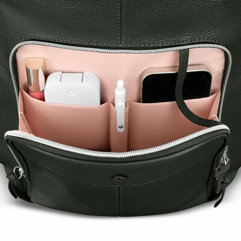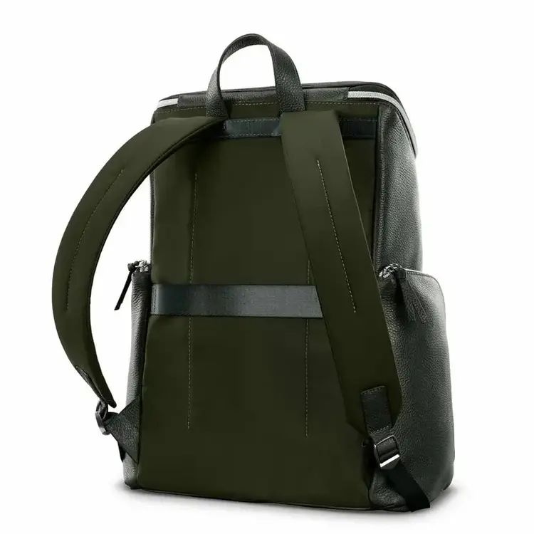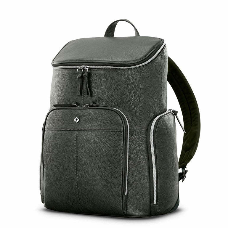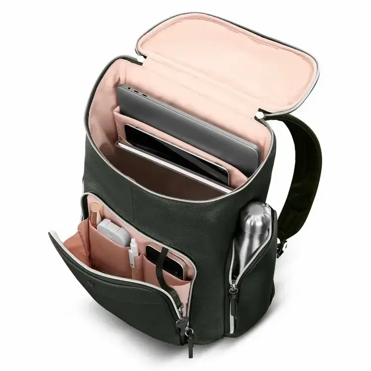 Crafted from supple pebbled leather, the Deluxe Leather Backpack effortlessly supports your dynamic lifestyle while elevating your look. It features padded laptop and tablet sleeves, a spacious front pocket, two side zippered pockets for your water bottle or umbrella, and comfortable shoulder straps. Finished with minimalist details and subtle branding, it beautifully blends style and everyday function. The built-in StackIt™ strap adds ease to your commuting and travel.