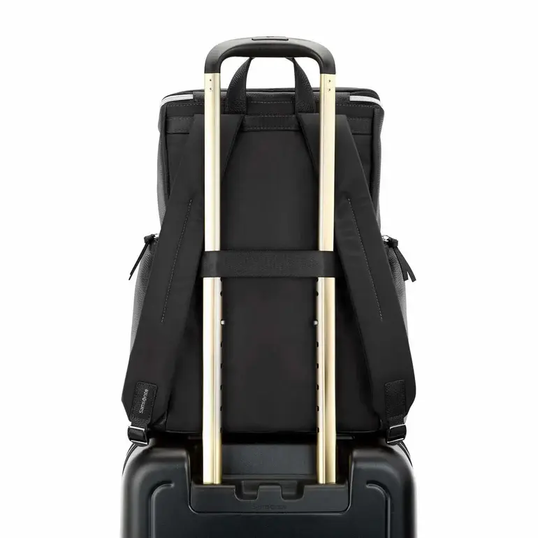 Crafted from supple pebbled leather, the Deluxe Leather Backpack effortlessly supports your dynamic lifestyle while elevating your look. It features padded laptop and tablet sleeves, a spacious front pocket, two side zippered pockets for your water bottle or umbrella, and comfortable shoulder straps. Finished with minimalist details and subtle branding, it beautifully blends style and everyday function. The built-in StackIt™ strap adds ease to your commuting and travel.