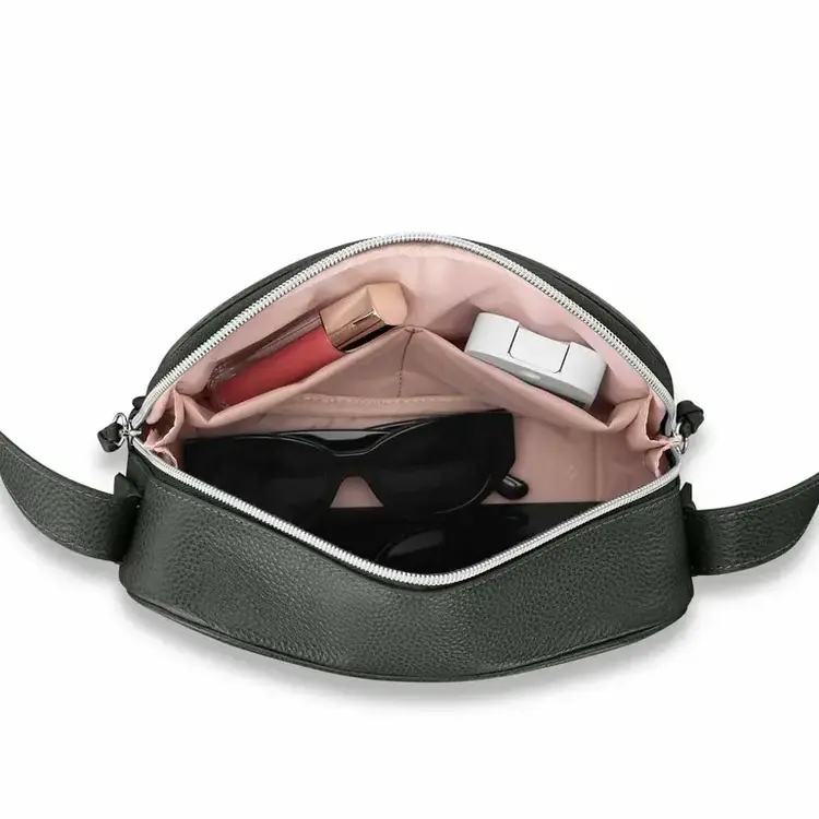 Small yet sophisticated, the Leather Crossbody is crafted from supple pebbled leather with minimalist details and a sleek adjustable strap with a polished metal buckle. Designed to carry more than just the essentials—phone, sunglasses, and wallet—it offers an RFID-lined main compartment and a zippered back pocket to keep your valuables organized and secure. Perfect for light, grab-and-go days.