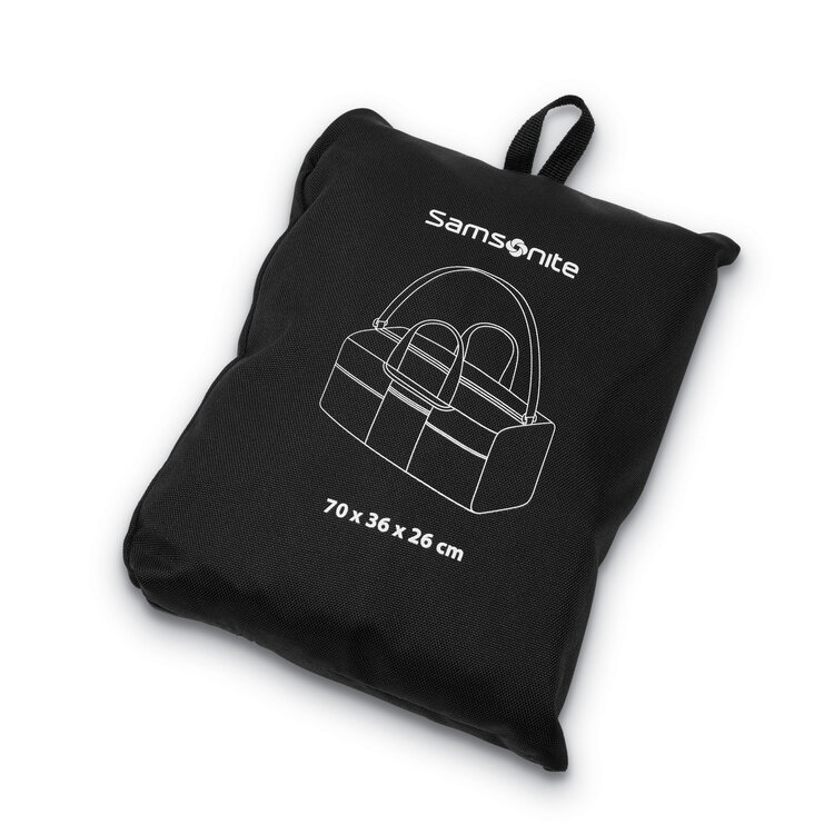 Travel smart with the Samsonite Foldaway Duffle XL, crafted from durable 100% polyester fabric. This practical tote folds effortlessly into its own compact pouch for easy storage. Featuring multiple exterior pockets for quick access to essentials, plus bail handles and a removable strap for versatile carrying options, this lightweight duffle is perfect for your next adventure.