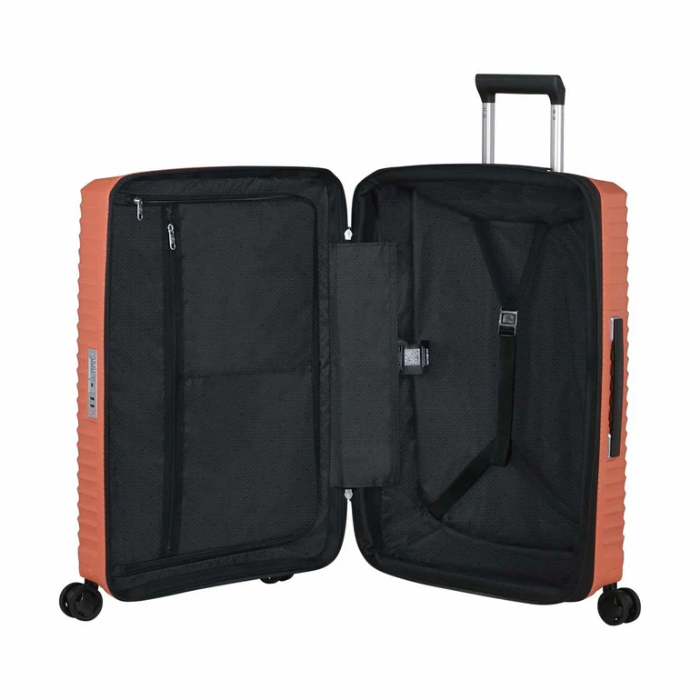 • Travel smarter with Upscape! Experience modern convenience with its lightweight design, shock-absorbing suspension wheels, and expandable capacity. The removable, washable interior lining adds practicality, while its sleek black detailing ensures a seamless and stylish travel experience.