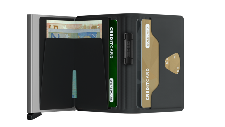 The Cardprotector mechanism allows you to slide out cards with one simple motion, while the aluminium protects your cards from bending, breaking and unwanted wireless communication.