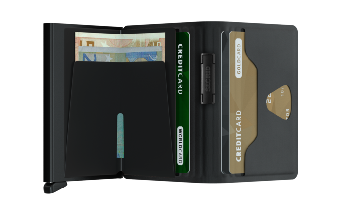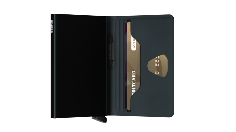 The Cardprotector mechanism allows you to slide out cards with one simple motion, while the aluminium protects your cards from bending, breaking and unwanted wireless communication.